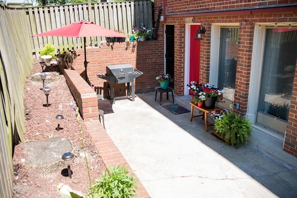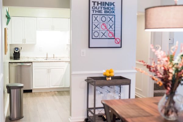 Kitchen After - painted oak cabinets, new counter, flooring, wall and ceiling paint & overhead light